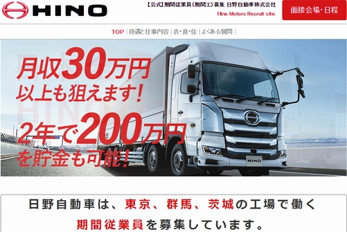 ↓日野自動車の期間工には、こちらの募集ページから応募が可能です。